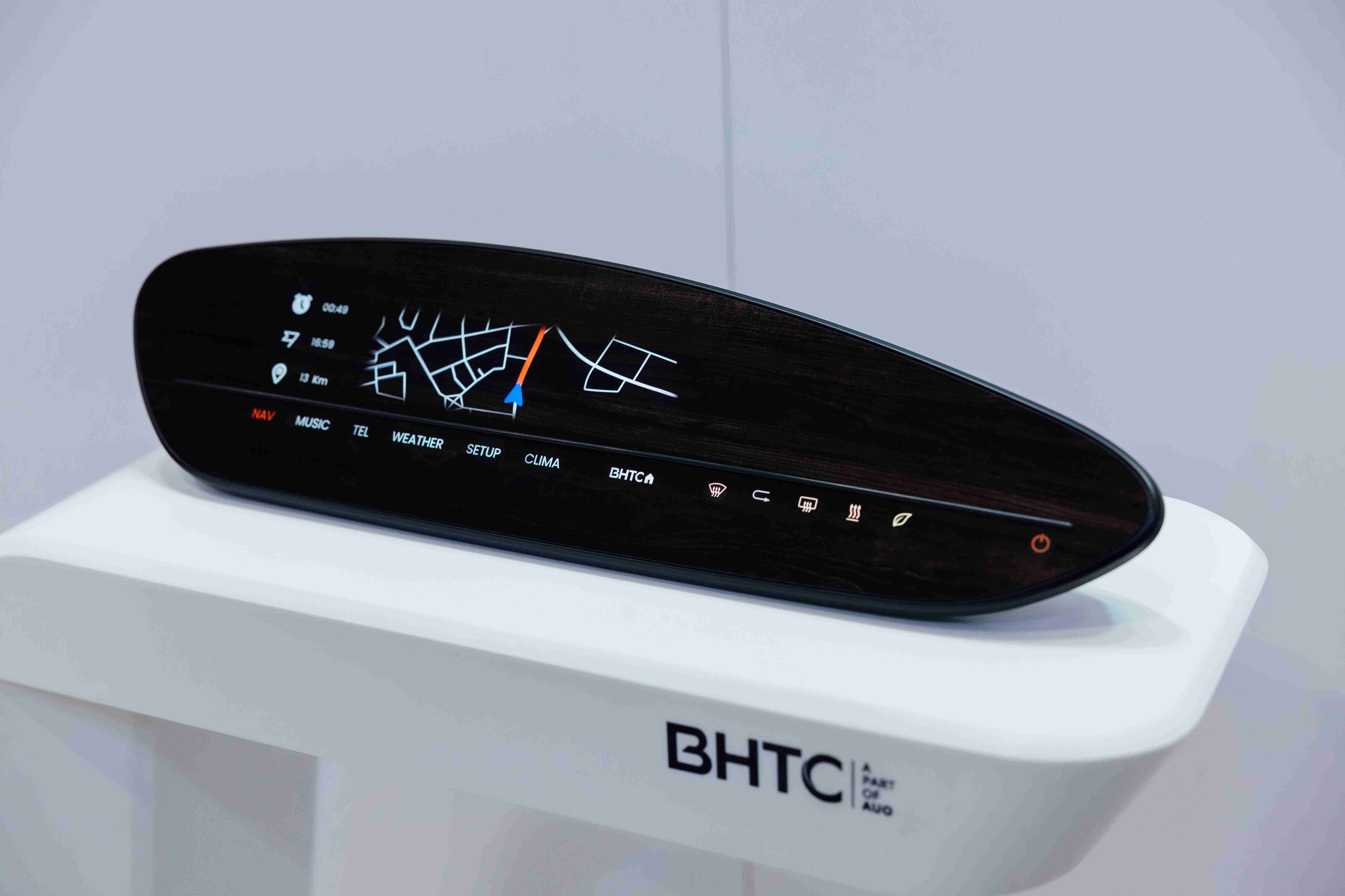 BHTC的木纹车用显示器(Display Behind Wood)将无缝木质表面与显示器结合后,,,可以融入车内设计中,,,提供驾驶优质的视觉效果,,,,加上其无边框的设计和亮度调控,,,,创造更优质的车内体验。。。。