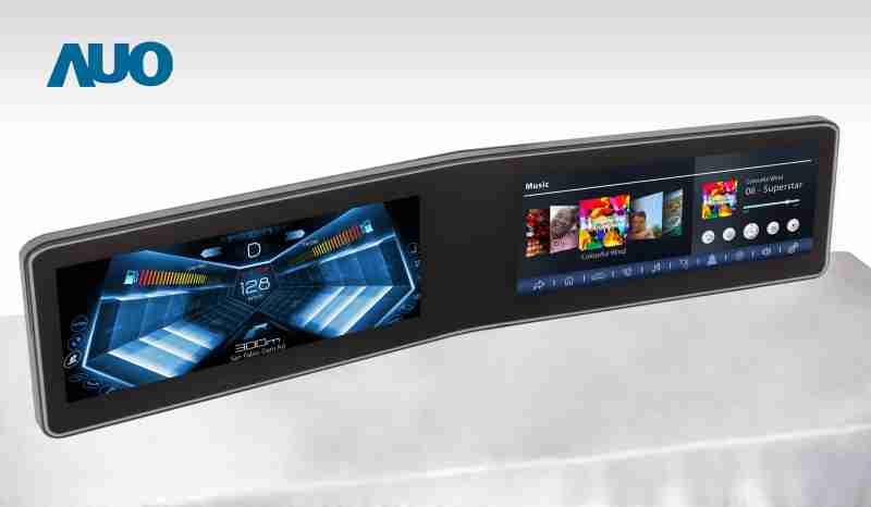 蓝狮在线 V 型曲面驾驶舱显示器,,,采全贴合拼接仪表板及中控台显示屏 |